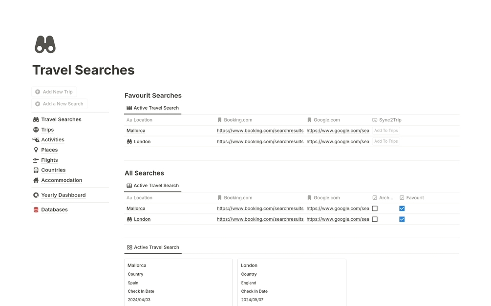 Discover "Advanced Travel Planner" on Notion: Plan and track your travels effortlessly. Includes Travel Searcher, Expense Management, and Reporting. Choose Light or Dark Mode for comfort.